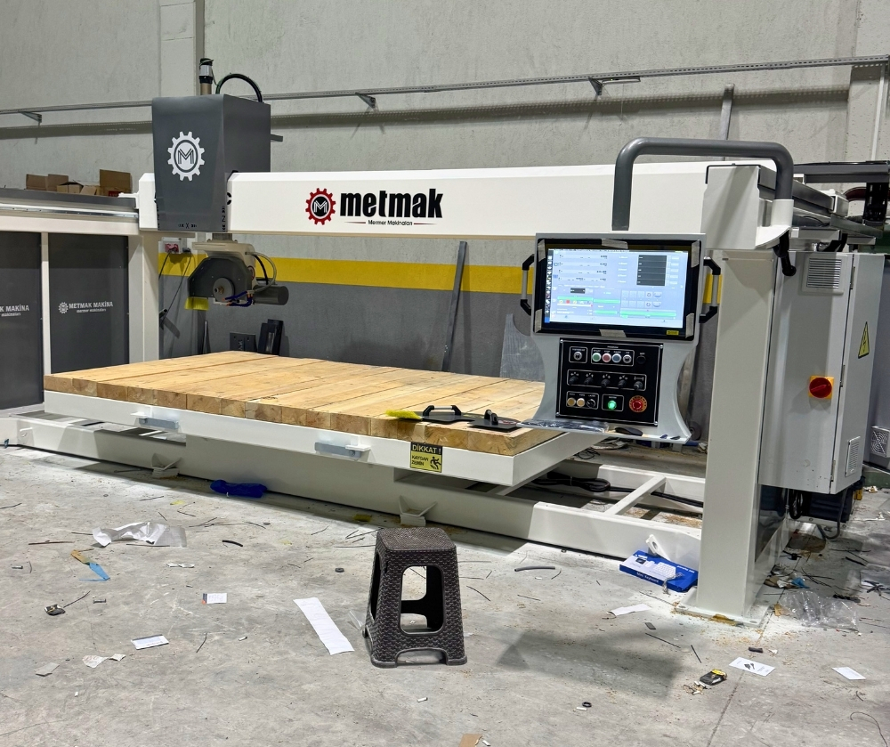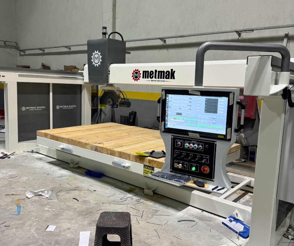 Standart kameralı 5 eksen CNC köprü kesim makinesi; mermer, granit ve benzeri doğal taşların hassas, kontrollü ve verimli şekilde işlenmesi için geliştirilen, kamera destekli ve çok eksenli hareket kabiliyetine sahip ileri seviye bir üretim sistemidir.